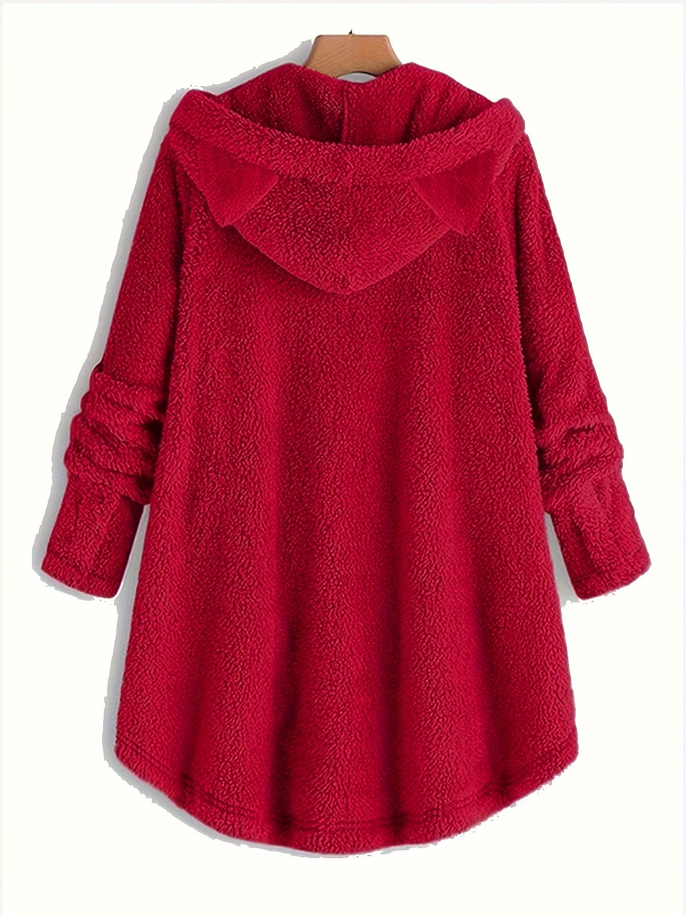Cat Print Dipped Hem Plush Hoodie